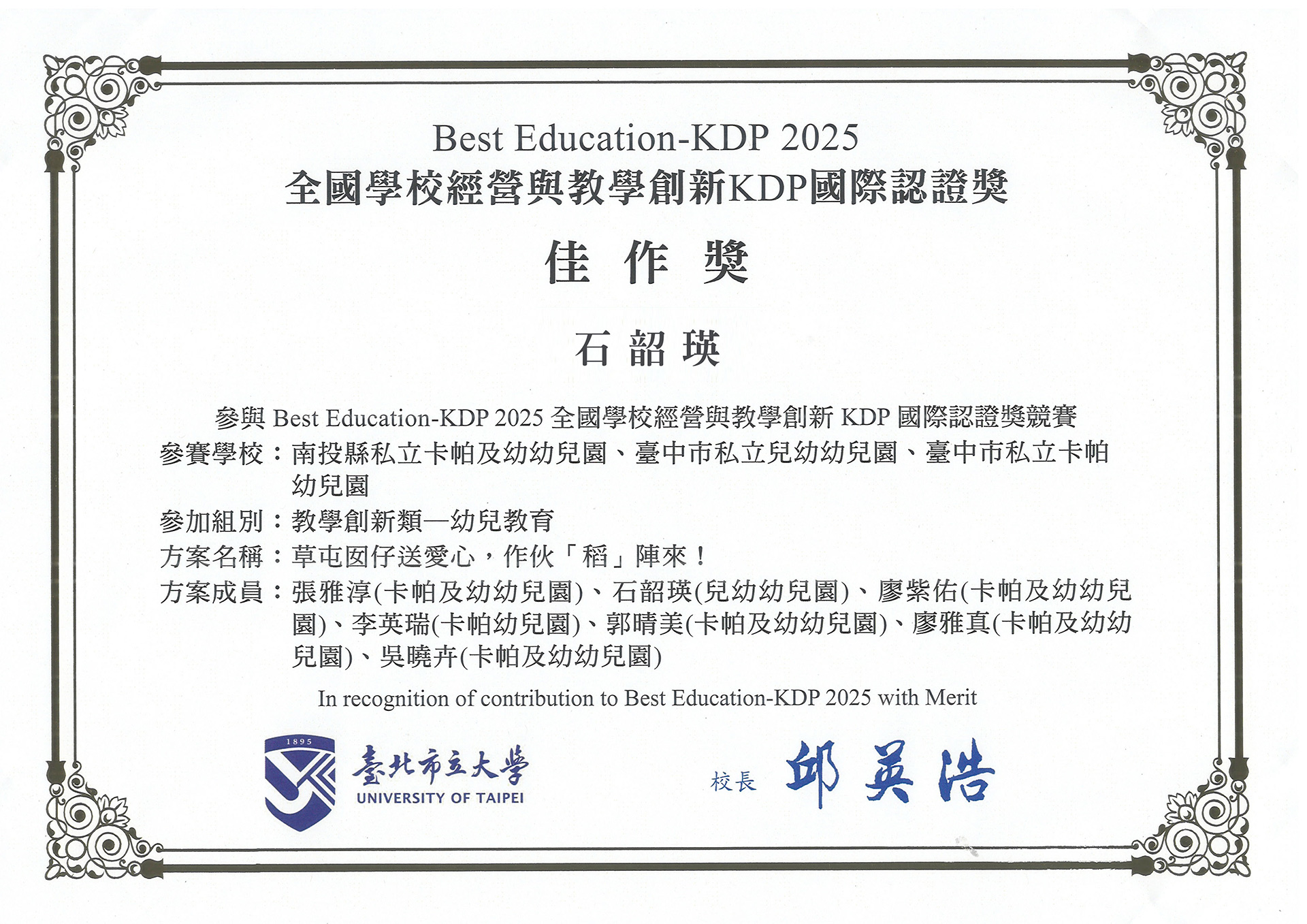 在創辦人李英瑞及石韶瑛園長的帶領下,卡帕教育團隊以堅強的專業與熱情脫穎而出。